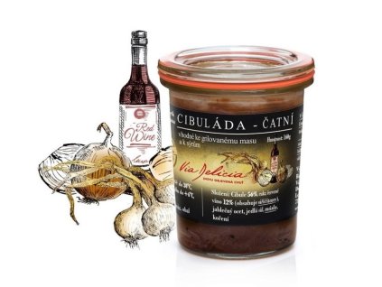 Jemně krájené cibulové proužky dušené ve směsi červeného vína, jablečného octa a poctivého karamelu. Pikantnost jim dodává směs černého pepře a bylinek.