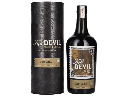 Hunter Laing Kill Devil Guyana Single Cask Rum 24yo byl destilován v únoru 1992 a zrál v jediném sudu. Bylo vyrobeno pouze 338 lahví.