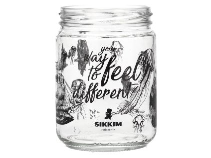 Skleněný džbánek Sikkim Gin pro perfektní koktejl Gin&Tonic. Na zadní straně dvě kalibrační čáry 2cl a 4cl.