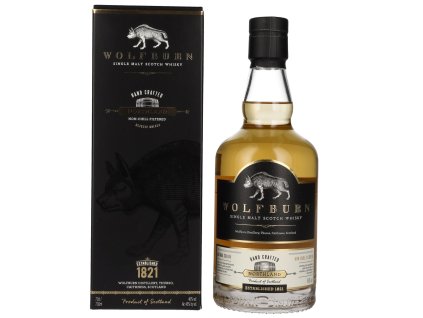 Skotská single malt whisky Wolfburn se vyrábí ve stejnojmenné palírně, která leží na samém severu Skotska a kdysi bývala největším producentem whisky v lokalitě Caithness. Lihovar založil William Smith v roce 1821 a pojmenoval ho Wolfburn po řece, ze které čerpal vodu. Whisky této značky se dodnes vyrábí pomalu, ručně, dvojitou destilací v malých kotlích a z prvotřídních surovin. Obrázek vlka v logu je kresbou zoologa ze 16. stolení, Conrada Gessnera. Dříve se totiž tradovalo, že na severu skotská žije vodní vlk, příbuzný tomu lesnímu, a kdo ho spatří, bude mít štěstí.