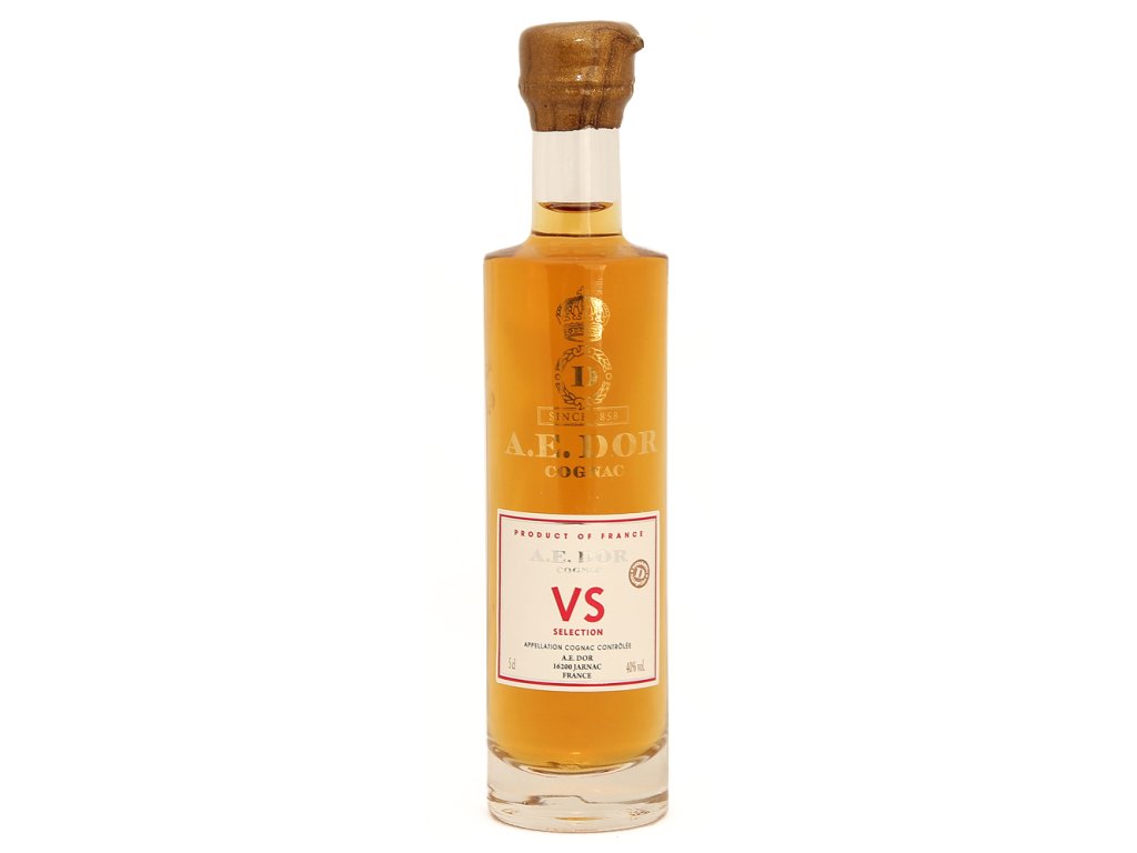 A.E. Dor VS Cognac 0,05L pochází z Francie. Je to koňak velmi jemného a ovocného charakteru. Vůně je vždy příjemná a jemná s jemnými tóny ovoce a vanilky. Dlouhému závěru dominuje karamelová sladkost.