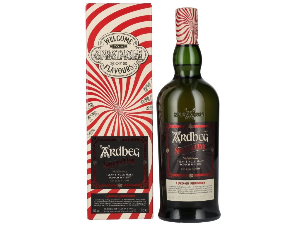 S "Spectacular" představuje Ardbeg pozoruhodnou novinku, která jako první svého druhu zraje ve vzácných sudech po portském. Tato speciální metoda zrání dodává whisky hluboký chuťový rozměr a působivé zbarvení, což umožňuje rozvinout aroma hořké čokolády, máty, kandovaného ovoce, uzených svíček a uzených pekanových ořechů v jedinečném souboru.