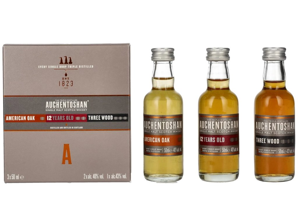 Auchentoshan Gift Collection Whisky 3x0,05L (American Oak + 12yo + Three Wood), 41%, -DB-