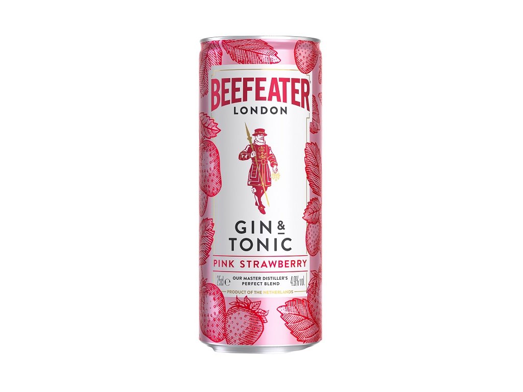 Verze Beefeater gin&tonic připravený k okamžité konzumaci. Základem je tentokrát oblíbený Beefeater Pink gin, jenž se vyznačuje výraznou chutí jahod. Společně s prémiovým tonikem tvoří osvěžující lehký drink, který zaujme svou ovocnou chutí.