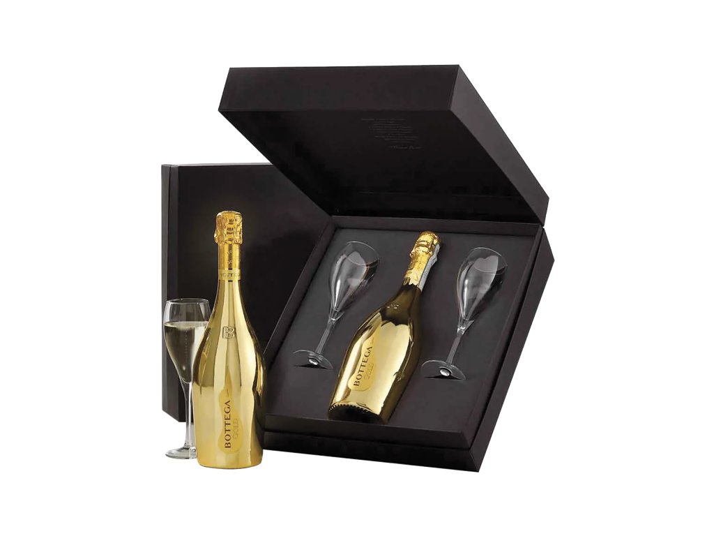 Dárkový set ikonického Bottega brut prosecca se dvěma skleničkami Bottega.