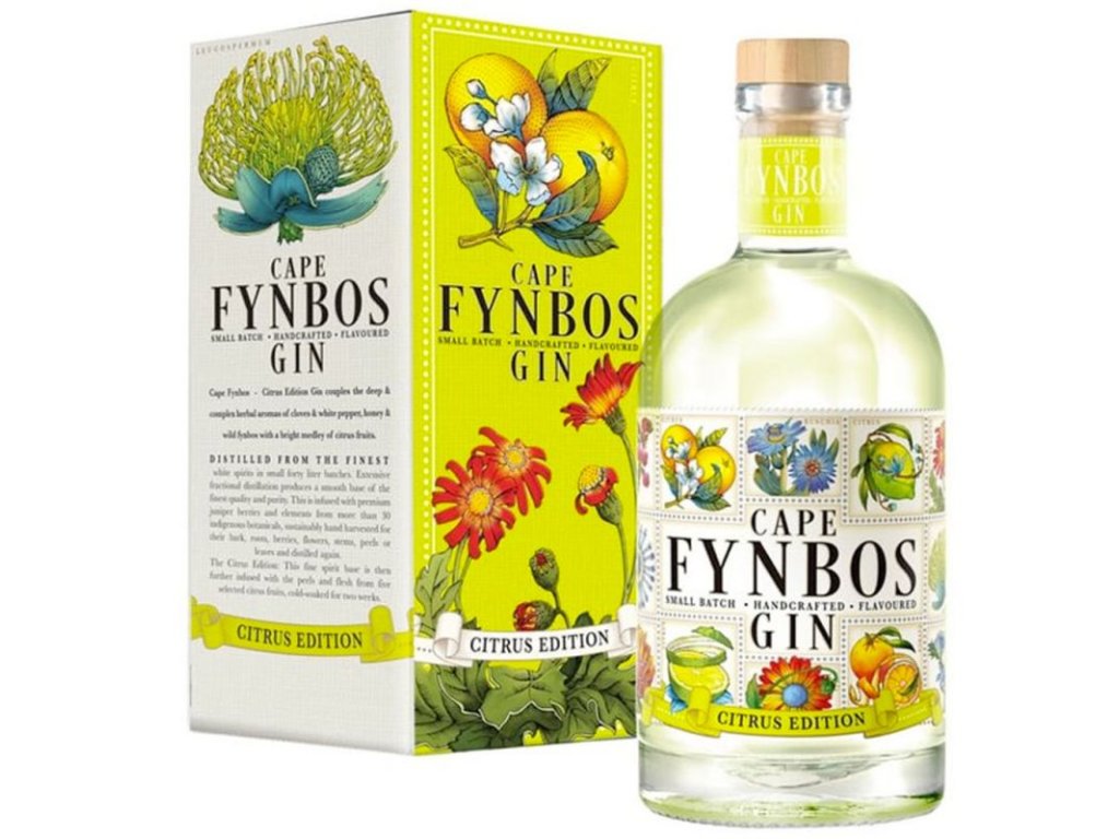 Cape Fynbos Citrus Gin je naplněn kůrou a dužinou z pěti vybraných citrusových plodů. Tento pikantní gin kombinuje komplexní bylinné aroma hřebíčku a bílého pepře, medu a divokého fynbosu s jasnou citrusovou směsí.