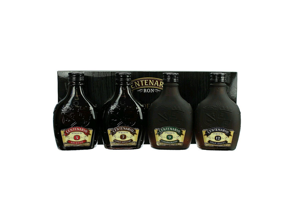 Degustační sada kostarických rumů značky Centenario, která nabízí průřez jejich portfoliem od mladších až po velmi vyzrálé rumy.
