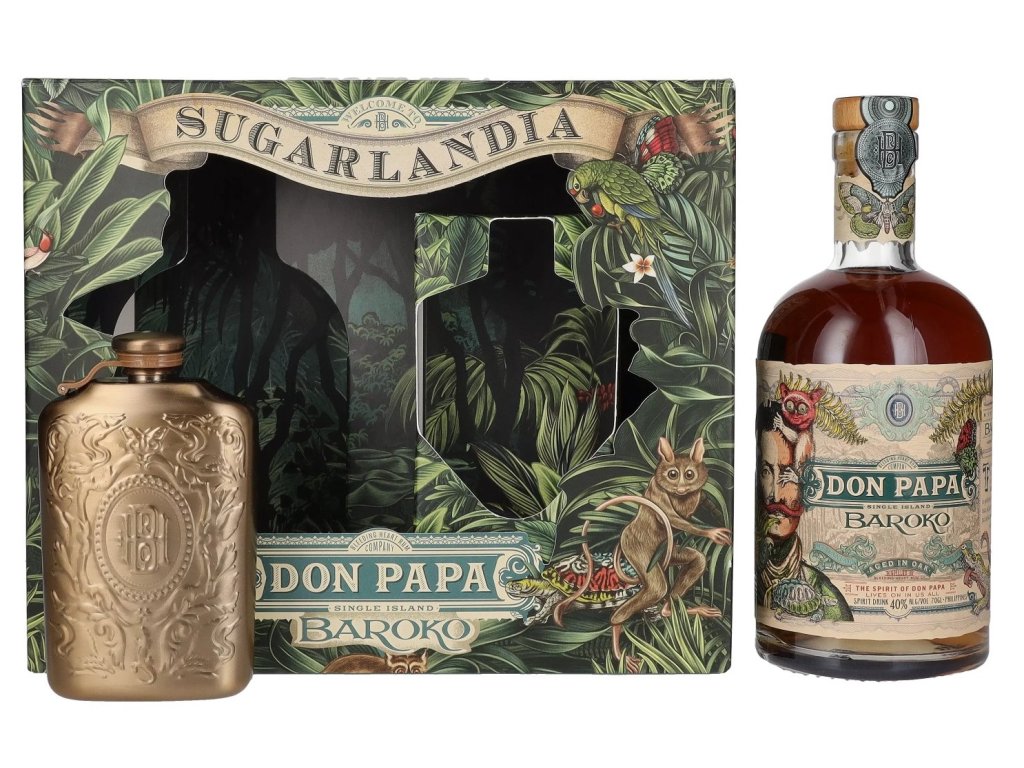 Don Papa Baroko & Hip Flask Gift Box 0,7L, 40%, -DB + placatice-