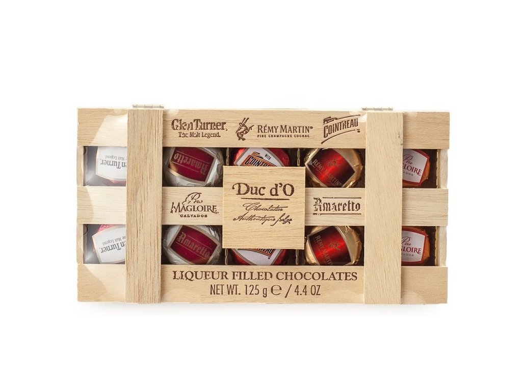 Zažijte něco výjimečného a vychutnejte si lahodné harmonické spojení delikátních chutí světoznámých likérů ukrytých v jemné hořké belgické čokoládě. Duc d'O - likérové pralinky jsou uloženy do originální dřevěné krabičky a jsou proto vhodné jako skvělý dárek.