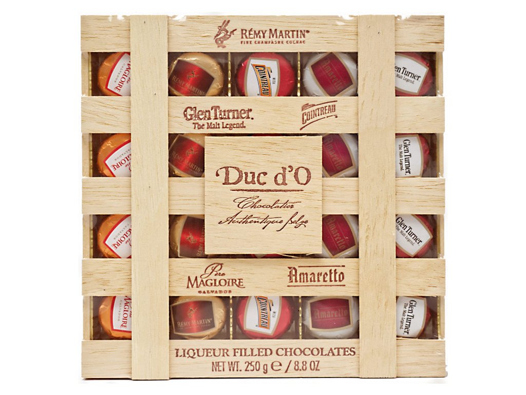 Zažijte něco výjimečného a vychutnejte si lahodné harmonické spojení delikátních chutí světoznámých likérů ukrytých v jemné hořké belgické čokoládě. Duc d'O - likérové pralinky jsou uloženy do originální dřevěné krabičky a jsou proto vhodné jako skvělý dárek.