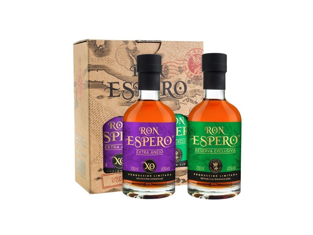 Dárková sada dvou rumů značky Espero. Box obsahuje Ron Espero Reserva Exclusiva (0,2L) + Ron Espero Extra Anejo XO Rum (0,2L).
