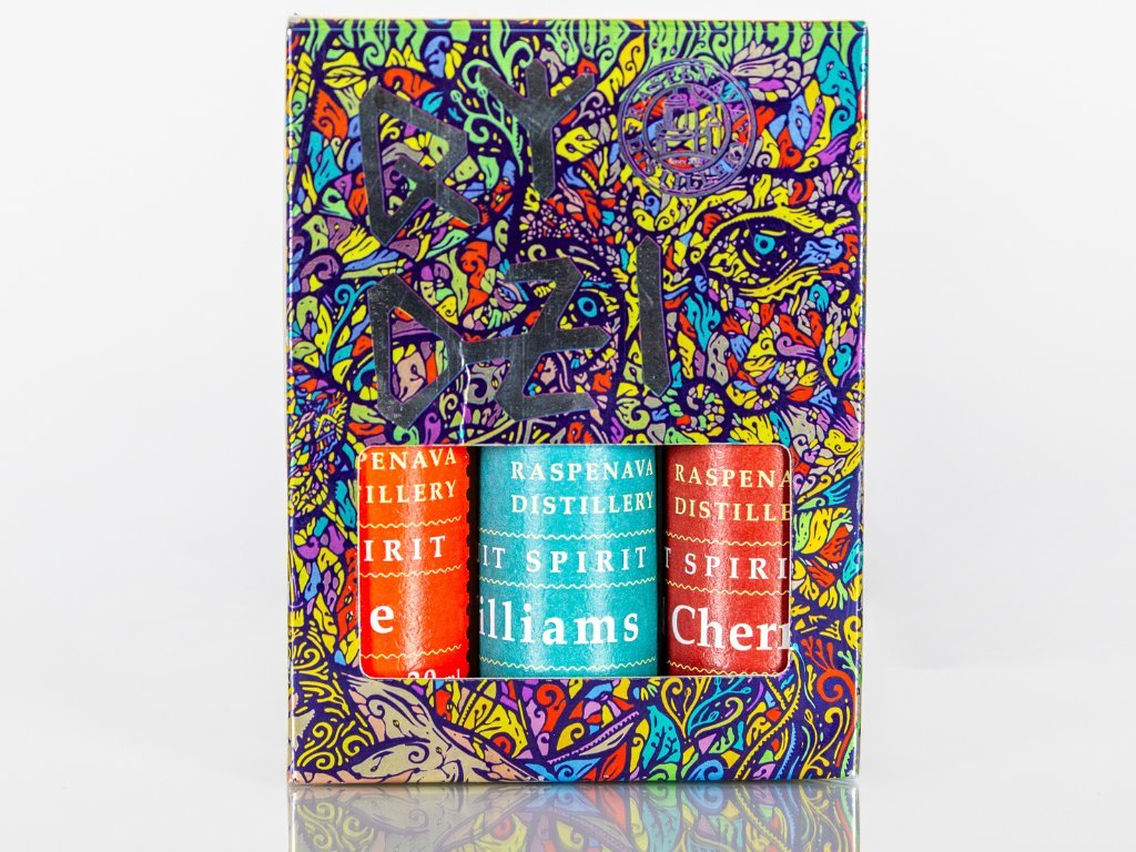 Sada vzorků prémiových Rýdzi ovocných destilátů.