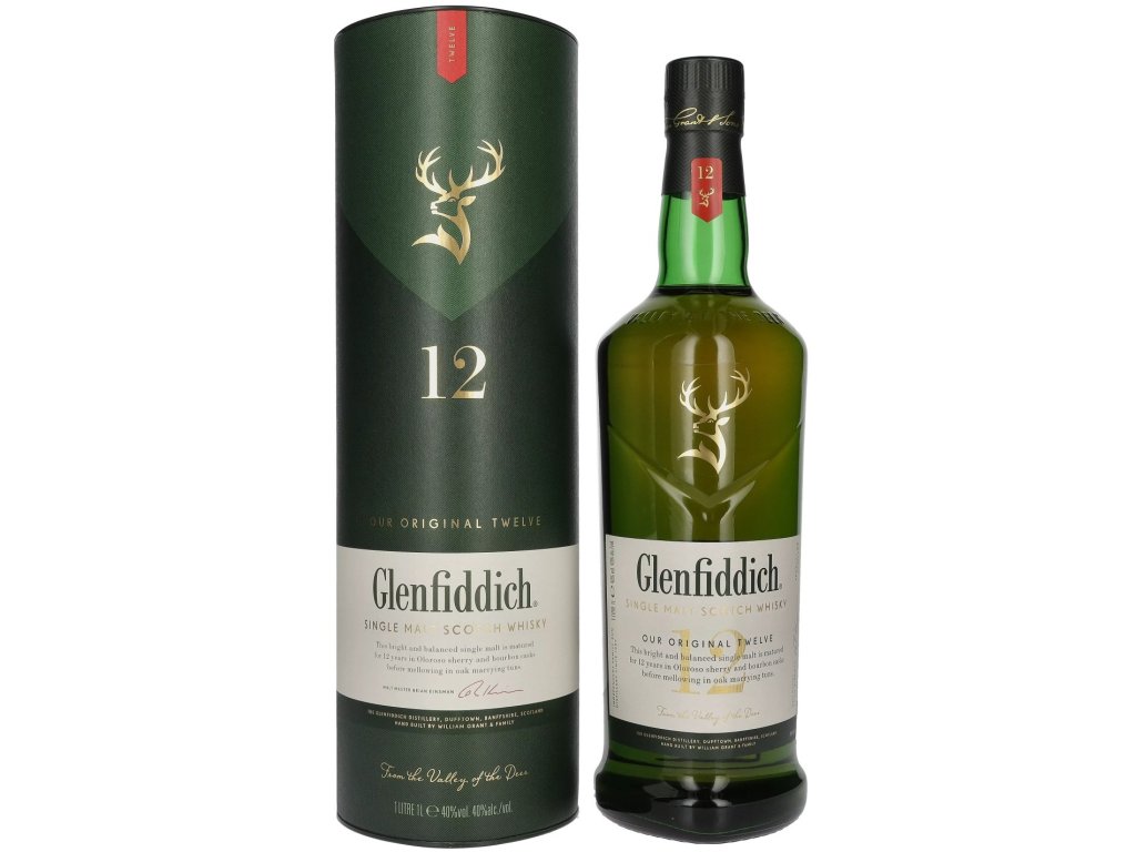 Rodinná tradice výroby skotské single malt whisky trvá od roku 1887. Už to je samo o sobě dobrým důvodem, proč si některou z lahví Glenfiddich pořídit. O této 12leté se potom konkrétně říká, že je nejlepším vstupem do světa whisky a po jejím ochutnání si tento druh destilátu zamilujete. Glenfiddich 12yo má totiž jasnou vůni ovoce, především hrušek. Chuť pak přechází do sladkých tónů mléčných bonbónů, smetany a sladu.
