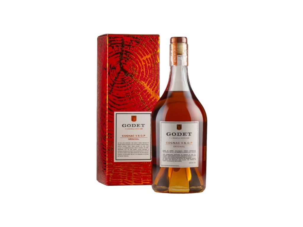 Godet V.S.O.P. Original je zralý desetiletý koňak, vyrobený ze směsi hroznů z oblastí Grande Champagne, Petite Champagne a Fins Bois.
