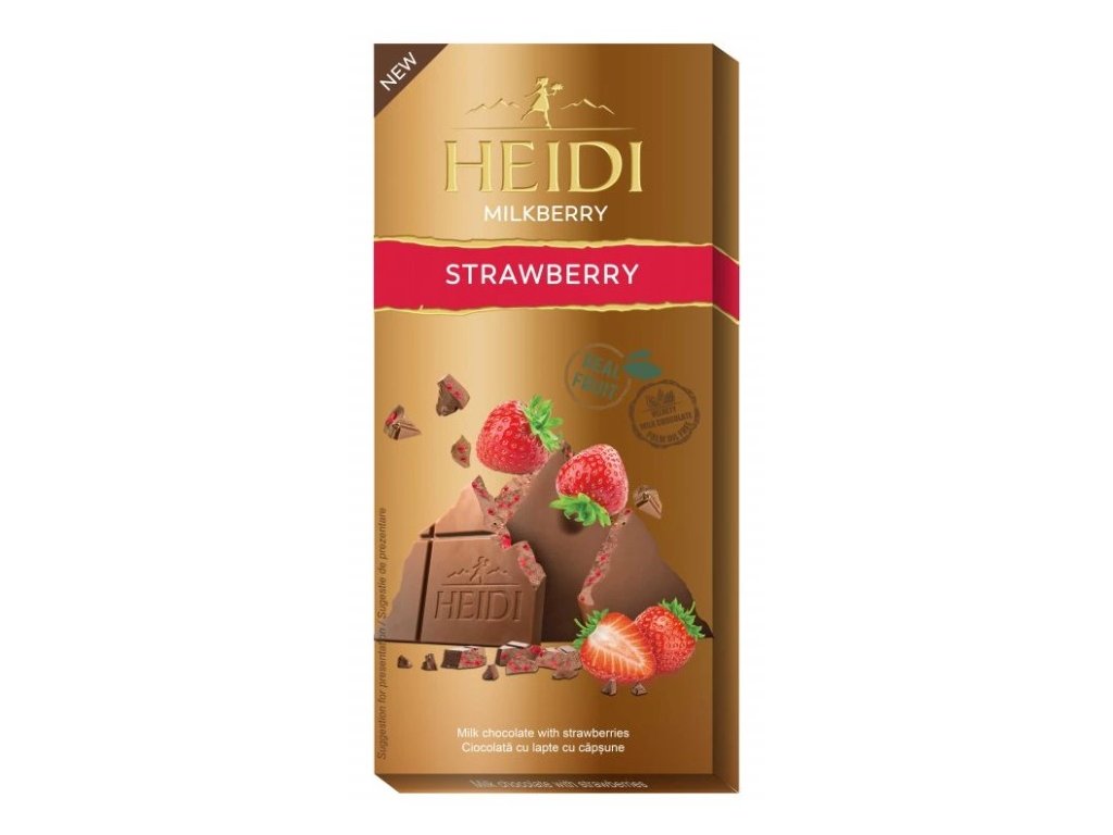 Kousky šťavnatých jahod v mléčné čokoládě. Ochutnejte čokoládu plnou léta.
