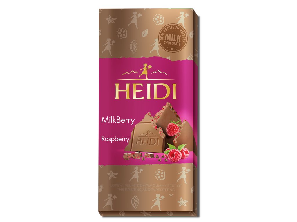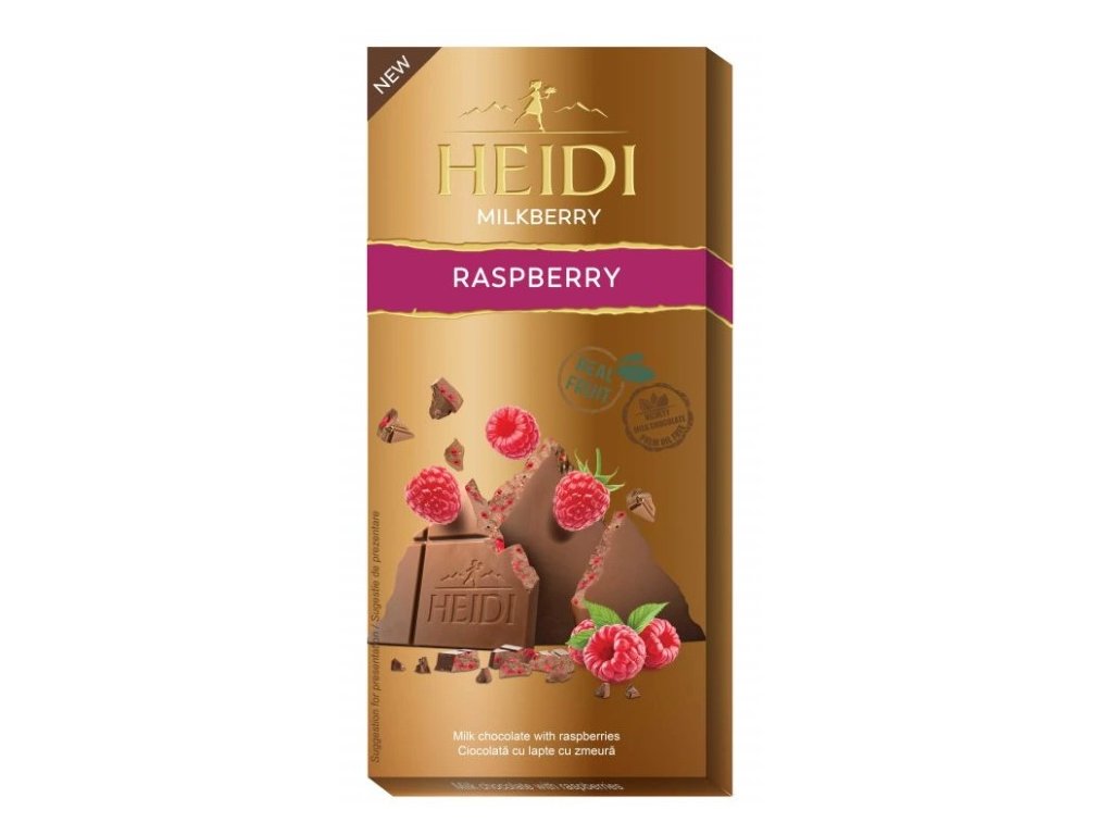 Složení: cukr, kakaové máslo, kakaová hmota, plnotučné sušené mléko, mrazem sušené maliny 1,9%, odstředěné sušené mléko, emulgátor: lecitiny ( obsahuje sóju), přírodní příchutě. Obsah kakaové sušiny nejméně :30% Může obsahovat stopy skořápkových plodů a lepku.
