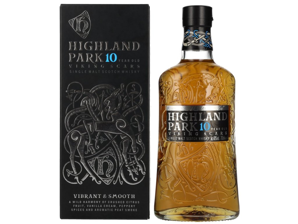 Highland Park Viking Scars 10yo je whisky, která vzdává hold vikinskému dědictví, které je silně spojeno s historií a kulturou Orknejí, kde se palírna nachází. Tato whisky je výsledkem dlouhého zrání v pečlivě vybraných sudech, což jí dodává vyvážený a komplexní profil. S každým douškem se projevují charakteristické kouřové a rašelinné tóny, které jsou pro Highland Park typické, spolu s jemnými ovocnými podtóny, vanilkou a medem.