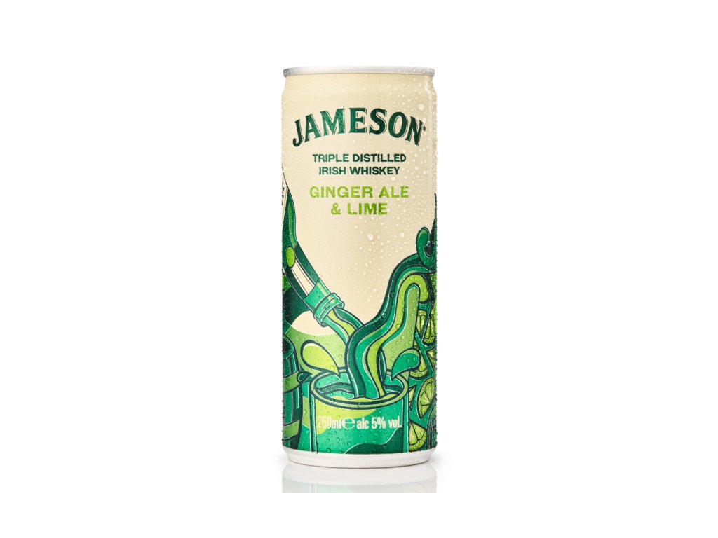 Svěží novinka značky Jameson. V plechovce o objemu 250 ml se dokonale snoubí chuť jemné třikrát destilované whiskey Jameson, kvalitní zázvorové limonády a limetové šťávy. Jameson Ginger Ale & Lime RtD ocení nejen zkušení konzumenti whiskey, ale také nadšenci do originálních a osvěžujících koktejlů.