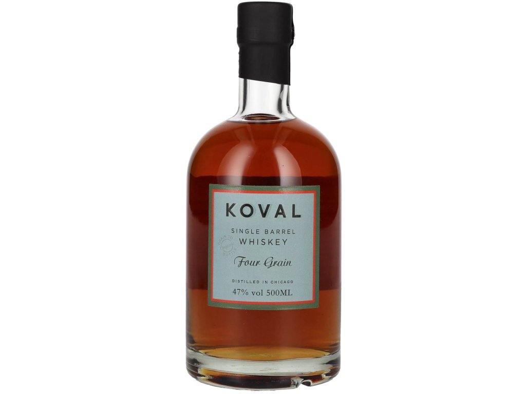 Koval Four Grain Single Barrel Whiskey je komplexní a silná whiskey, která kombinuje čtyři různé obiloviny – kukuřici, žito, pšenici a ječmen – pro bohatý a vyvážený profil s tóny vanilky, koření a jemného dubového dřeva. S 47 % alkoholu má plnou, ale hladkou chuť.