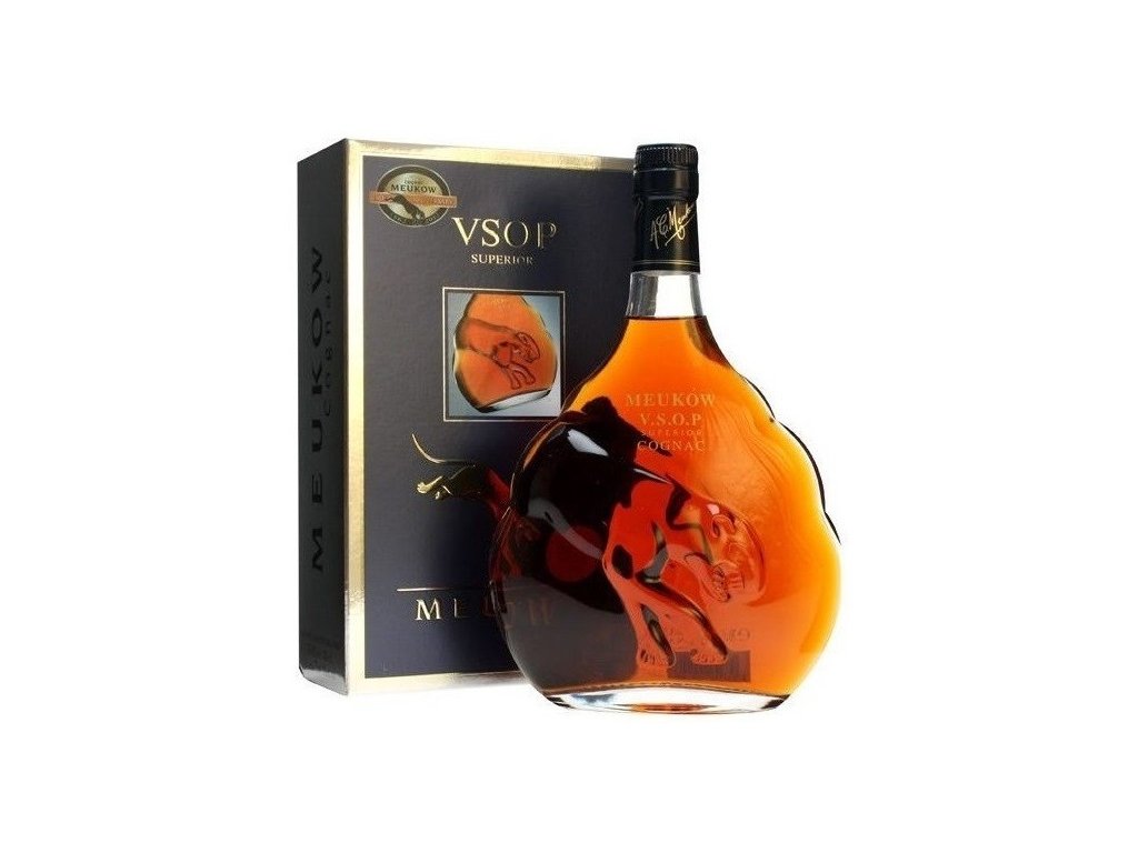 Meukow Koňak VSOP je balen do zajímavé lahve s charakteristickým znakem pantera. Oproti průměrnému koňaku nabízí vyváženou a plnou chuť symbolizující výjimečnost a eleganci. Tento sympatický panter potěší svým plným aroma s tóny sušeného ovoce a tělem z lesnatých plodů, které se typicky rozvíjí během skladování v malých dubových sudech. Závěr je jemný, s chutí vlašského ořechu a lékořice. "Panter" je ideálním společníkem pro mimořádné večery a velkolepé chvíle.