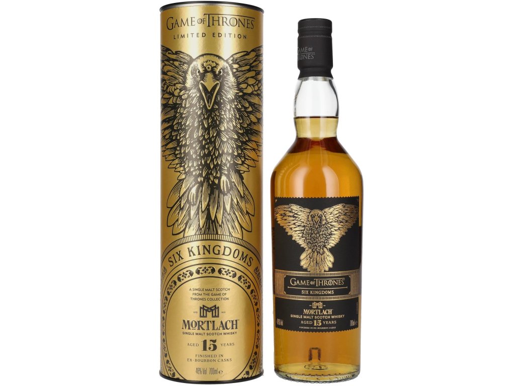 Mortlach GAME OF THRONES Six Kingdoms 15 Year Old je limitovaná edice whisky, inspirovaná světem Hry o trůny. Tato 15letá single malt whisky zraje v pečlivě vybraných sudech, což jí dodává bohatý, kořenitý a ovocný profil s nádechem kouře.