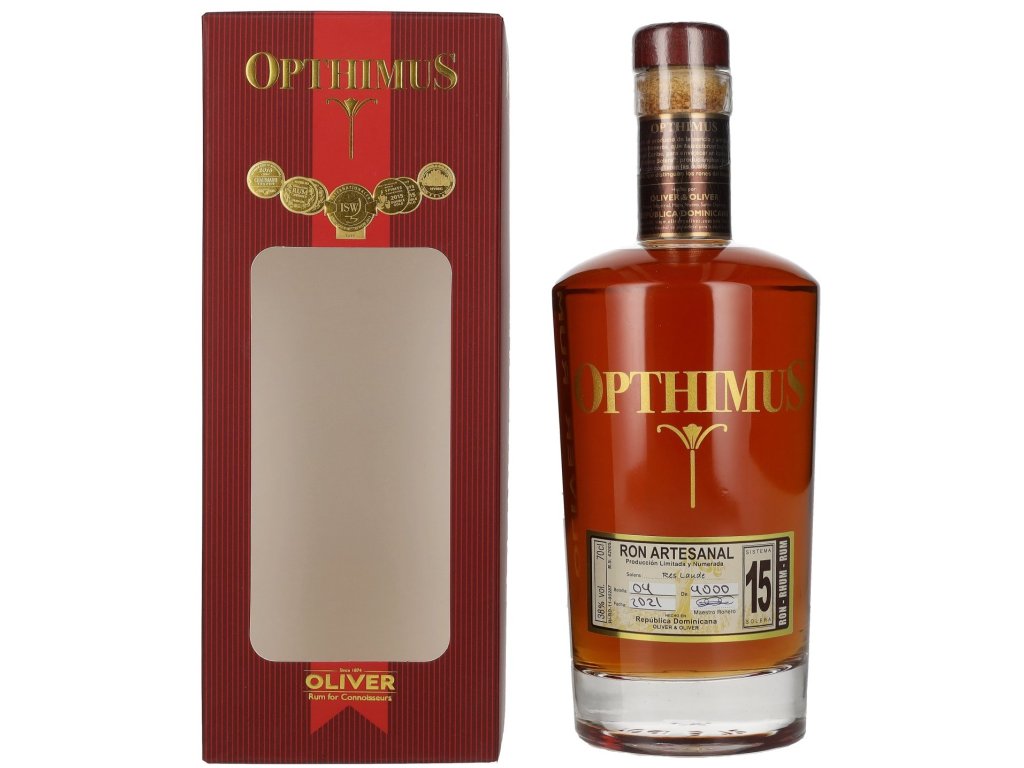 Opthimus Rum 15 let 0,7L slibuje velmi kvalitní a elegantní požitek. Chuť a vůně je překvapení, připomíná mořský vánek, díky slaným tónům a teplého doteku. Na patře je to exploze různých podnětů, můžete cítit ořechy, med, koření, vanilku a tóny kávy. Dochuť je dlouhá, teplá trošku pikantní. Každá lahev má své číslo a podpis.