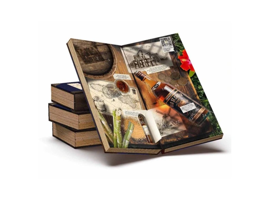 Za každým okénkem označeným číslem 1–24 naleznete malý vzorek (20ml) rumového destilátu Old St.Croix ( A.H.Riise pod novým názvem) pro každý den.
