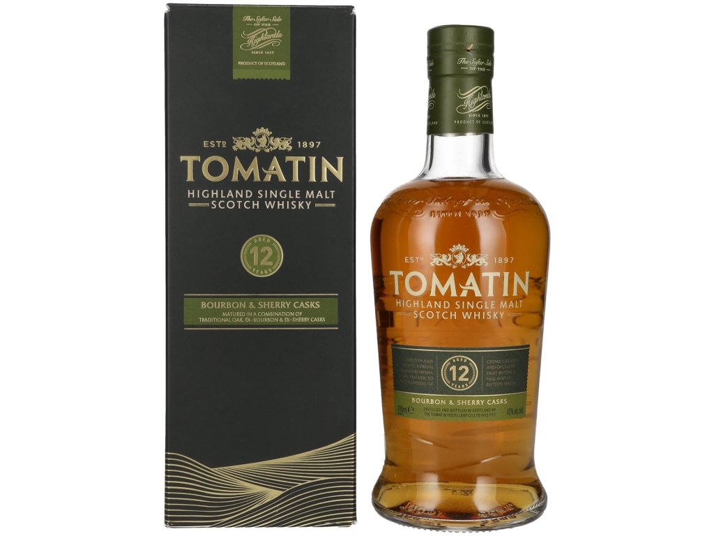 Tomatin 12letá Single Malt Whisky je harmonická skotská whisky, která po dobu 12 let zraje v pečlivě vybraných sudech po bourbonu a sherry, což jí dodává bohatý a komplexní chuťový profil. Sladké a ovocné tóny jablek a citrusů jsou dokonale vyváženy jemným sladkým kořením z vlivu sherry sudů. Sladkost této whisky je podpořena jemnou vanilkovou stopou z bourbonových sudů, což z ní činí lahodnou a snadno pitelnou whisky.