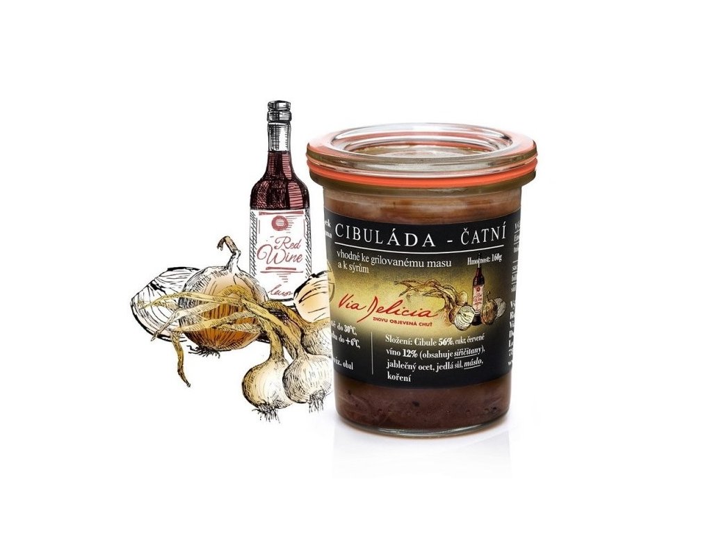 Složení: cibule 56%, cukr, červené víno 12% (obsahuje siřičitany), jablečný ocet, jedlá sůl, máslo, koření