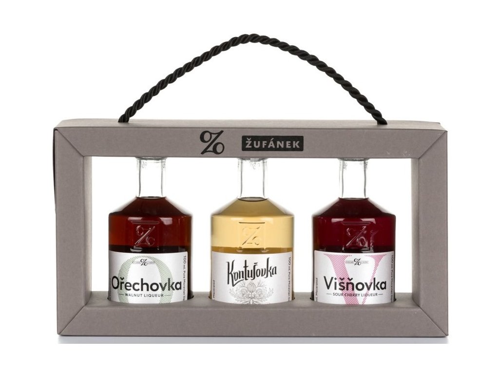 Žufánek Odnoska Likérů obsahuje Ořechovku, Kontušovku a Višňovku o objemu 0,1L.